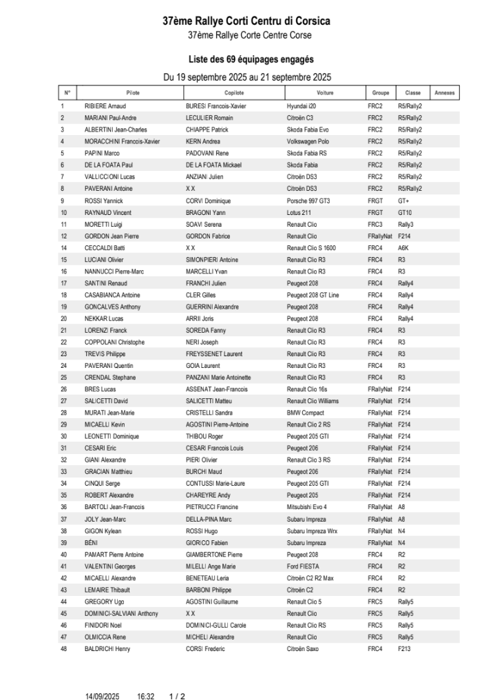 Vous trouverez ci-dessous tous les documents relatifs au 37ème Rallye de CORTE-CENTRE-CORSE.